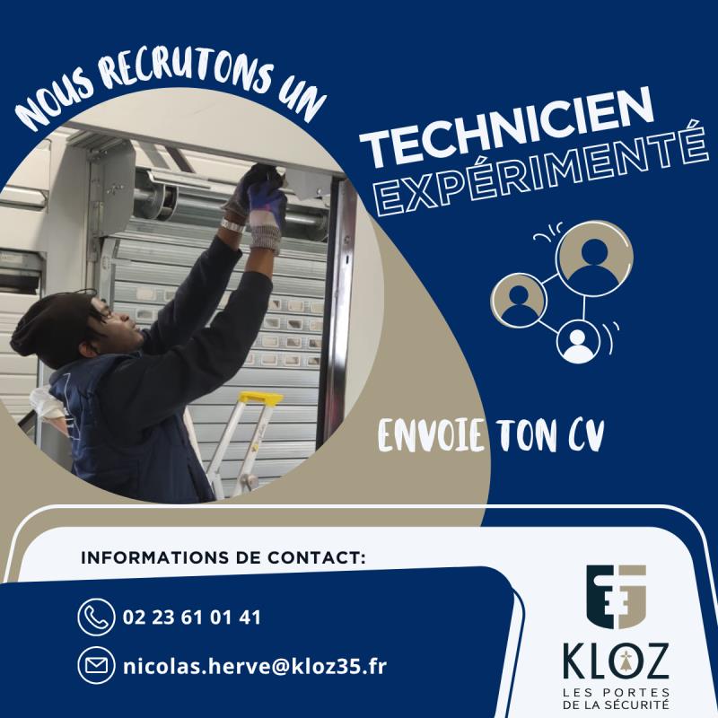 23/07/2025 : NOUS RECRUTONS UN TECHNICIEN EXPÉRIMENTÉ H/F